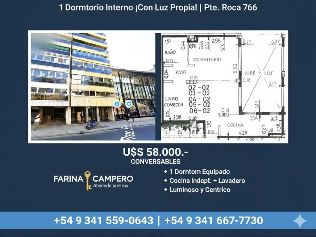 ¡Ideal Inversores! Pte. Roca y Córdoba 1 Dorm. Gas Adecuado