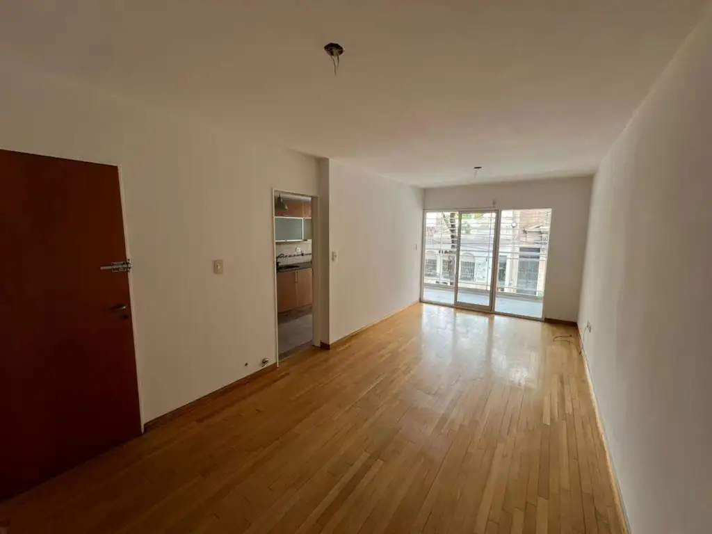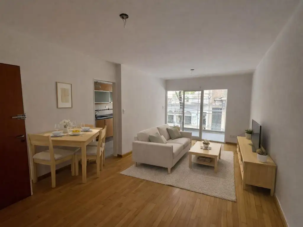 SOBRE INMUEBLE; departamento ubicado en el piso 1 al frente con orientación Sur y ventilación cruzada compuesto por living comedor con piso parquet el cual cuenta con salida al amplio balcón, cocina separada totalmente equipada con amplios espacios de almacenamiento y lavadero separado. La misma también cuenta con salida al balcón, 1 toilette. En el intimo nos encontramos con 2 dormitorios al contrafrente con placares empotrados y pisos de parquet y 1 baño completo con bañera.