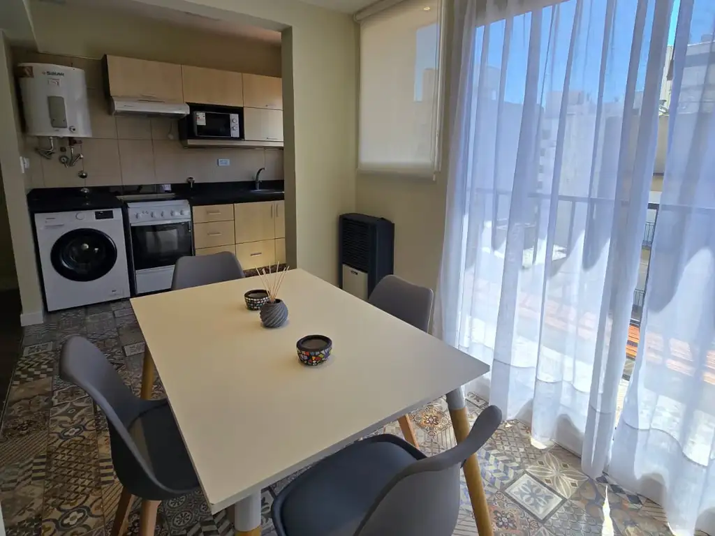 Está conformado por un buen living comedor con la cocina integrada. Todo amoblado con jueglo de living, y sobretodo el equipamiento de cocina, con artefactos a estrenar, heladera, lavarropas , microondas, campaña extractora, termotanque y muebles a medida.