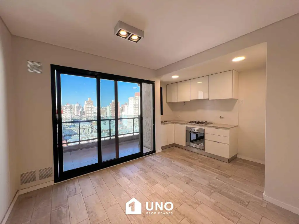 En la planta baja se encuentra el estar/comedor con cocina integrada, balcón al frente orientado al este, un baño y otro balcón terraza al contrafrente.