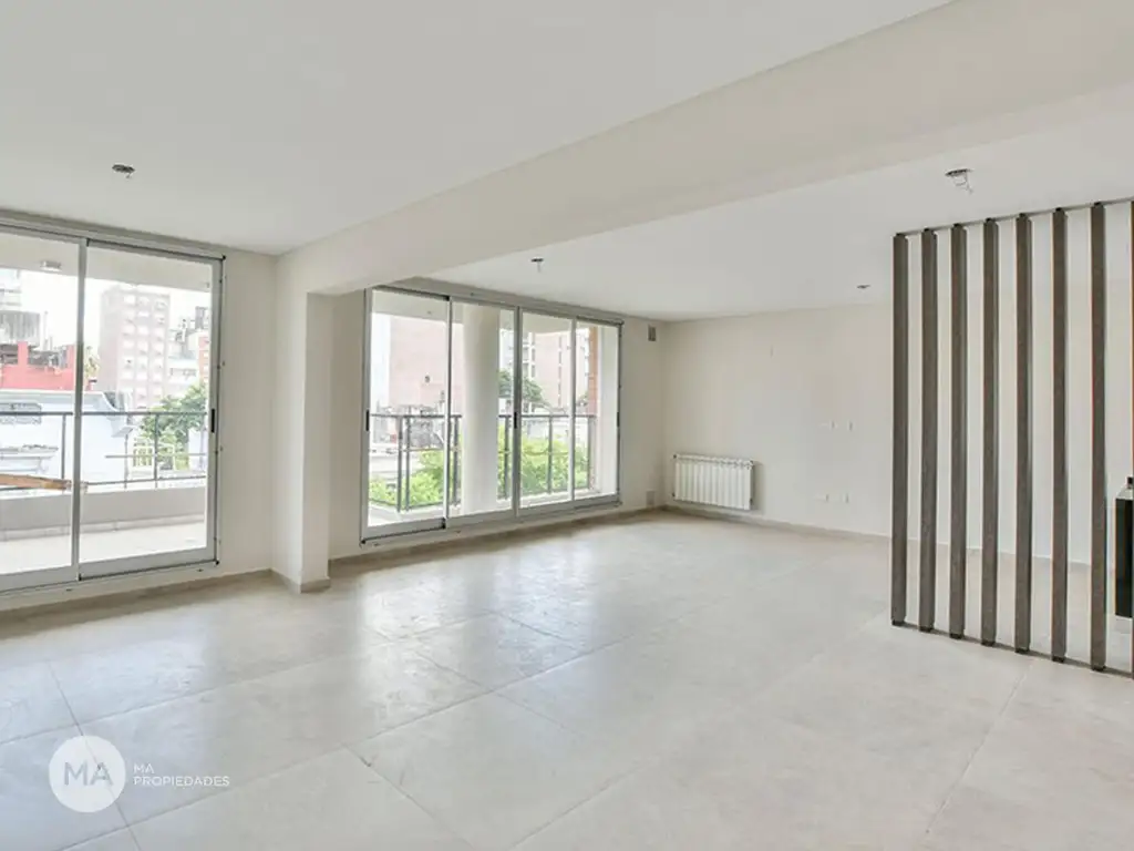 Cuenta con amplios balcones-terraza al frente y contrafrente, pisos de melamina, paredes pintadas al látex con colores a elección y molduras de yeso en cielorrasos. Cocina equipada con bajo mesada, alacenas, purificador de aire con salida al exterior, mesada de granito, cocina de acero inoxidable con encendido electrónico y horno visor. La calefacción es por caldera con radiadores. Los baños están completos, con todos los artefactos y accesorios instalados, incluyendo bañeras de hidromasaje y platos de ducha.