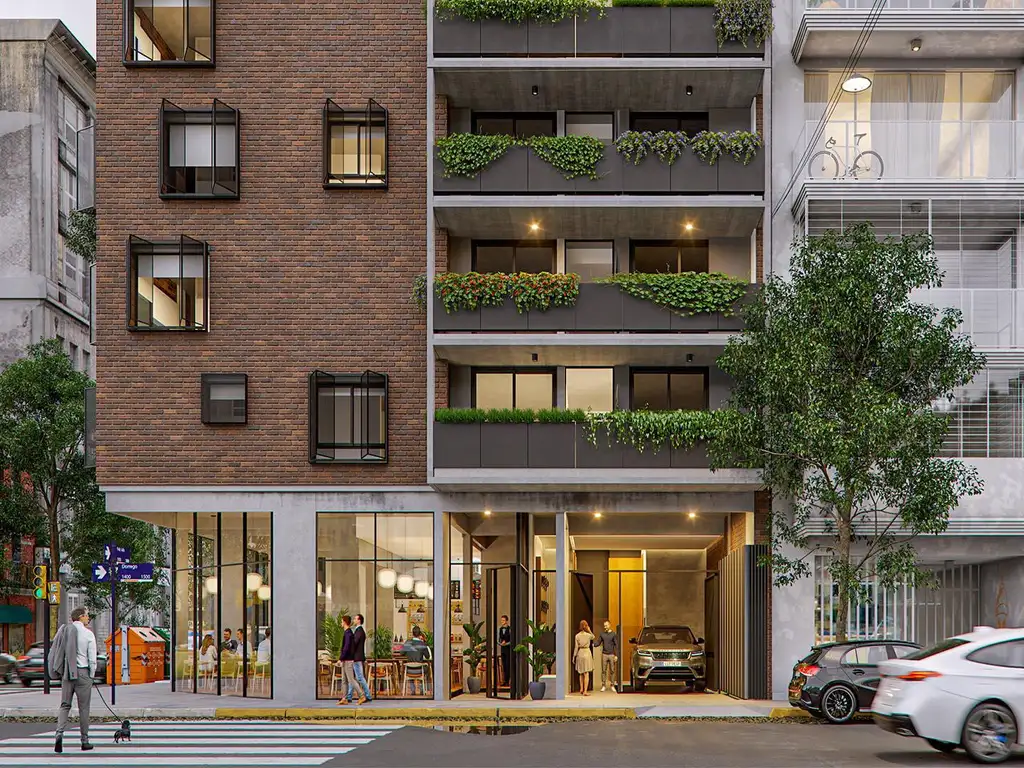 Edificio compuesto de planta baja y 8 pisos, con cocheras en subsuelo, local comercial en PB, 2 ascensores y unidades residenciales tipo monoambientes y departamentos de 2 y 3 dormitorios. Amenities: terraza común con quincho, solárium y pileta.