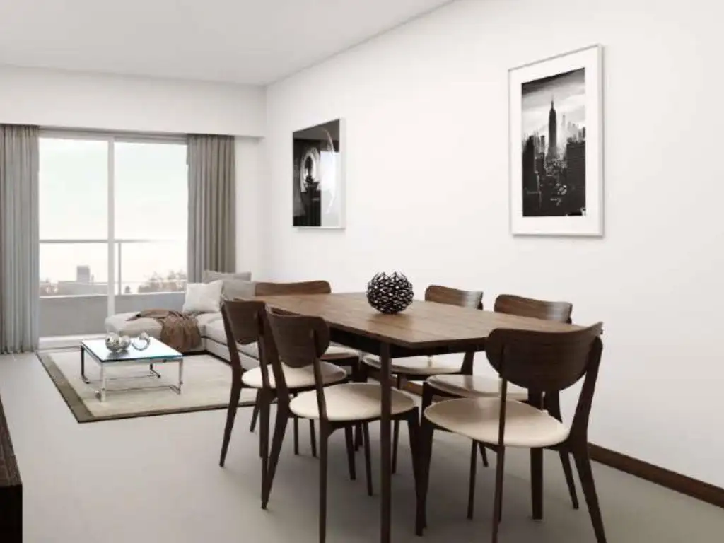 Pisos porcellanatos en estar, cocina, baño y balcón y pisos flotante en dormitorios.