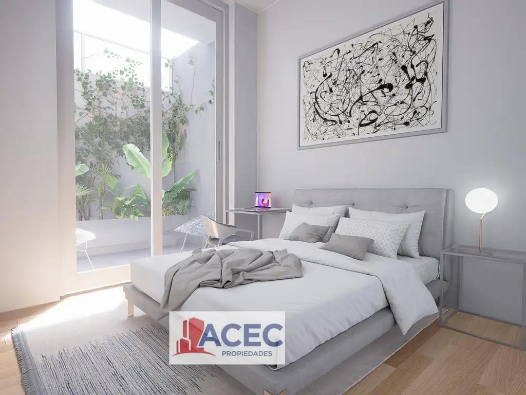 Estar comedor con espacio diferenciado para escritorio, y salida al balcón al contrafrente.