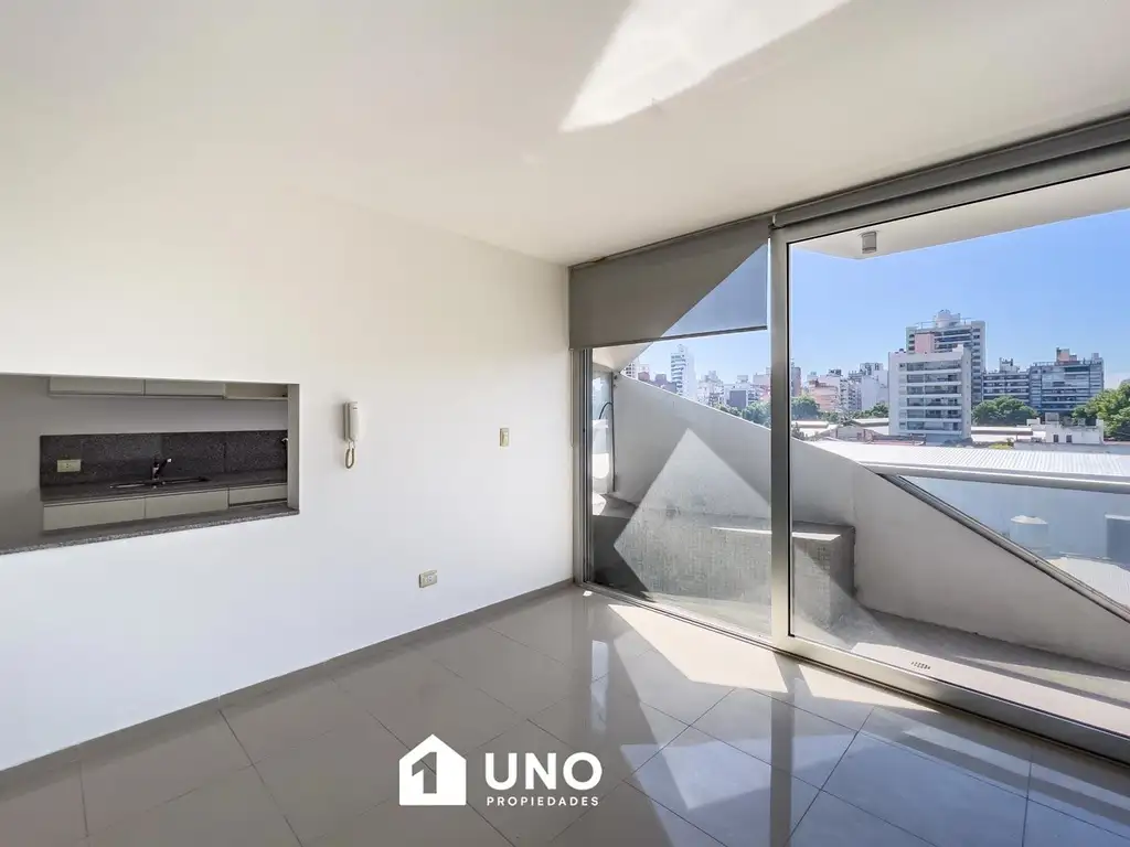 Luminoso departamento compuesto por dos dormitorios con placard, interiores terminados y calefactores TB instalados. El estar/comedor cuenta con aberturas de aluminio línea pesada de piso a techo, un espacioso al balcón terraza al frente, la cocina separada con pasaplatos y ventilacion natural. Un pasillo con ventanal y dos baños, uno completo con bañera y otro tipo toilet, ambos con ventilación natural. Rollers en todas las ventanas de la unidad. Terraza de uso común con parrillero, baño y solárium con deck.