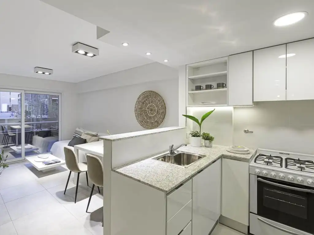 Descripción: ingreso al living comedor , con cocina integrada y acceso al balcón con vista despejada. Muebles de cocina y bajo mesada de calidad. Pisos de porcelanato, aberturas exteriores de aluminio sistema HYDRO, modelo HA62 con vidrios según requerimiento de eficiencia energética. Cortinas de enrollar automatizadas, agua caliente por calefón y estufas a gas para calefacción. Lavadero sectorizado. Dormitorio con placar empotrado y baño completo.