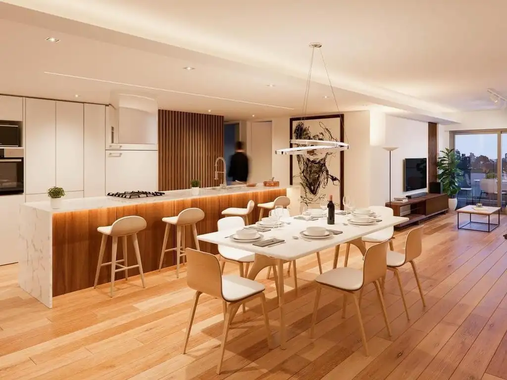 Pisos vinílico/ porcelanato. Placares con frentes de placar de melamina. Cocina con mobiliario completo de bajo mesada, alacena, mesada de granito. Horno empotrado y anafe. Bacha Johnson de acero inoxidable con grifería monocomando FV. Calefacción por radiadores y agua caliente por caldera dual. Aberturas con marcos y hojas de aluminio, DVH, línea A30 o similar. Sobre las paredes de los ambientes se realizará yeso proyectable para interiores. En baños pisos y paredes revestidas de cerámico de primera calidad, sanitarios y Grifería FV o similar.