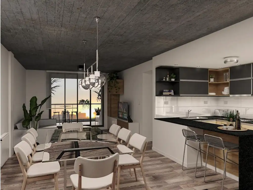Amplio y luminoso. Estar comedor, cocina semi integrada totalmente equipada con mesada, alacena y bajo mesada, dos dormitorios con placard y un baño completo, amplio balcón corrido al contrafrente. Fecha de entrega en Octubre de 2025. Excelente ubicación.