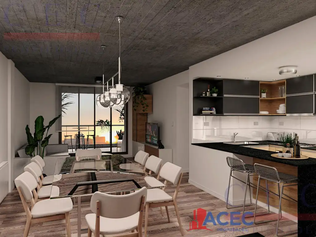 Se compone de estar comedor con cocina semi integrada, separada por barra desayunador con salida al balcón aterrazado. Posee dos dormitorios, con placares empotrados. El dormitorio principal tiene salida al balcón. Baño completo con bañera.