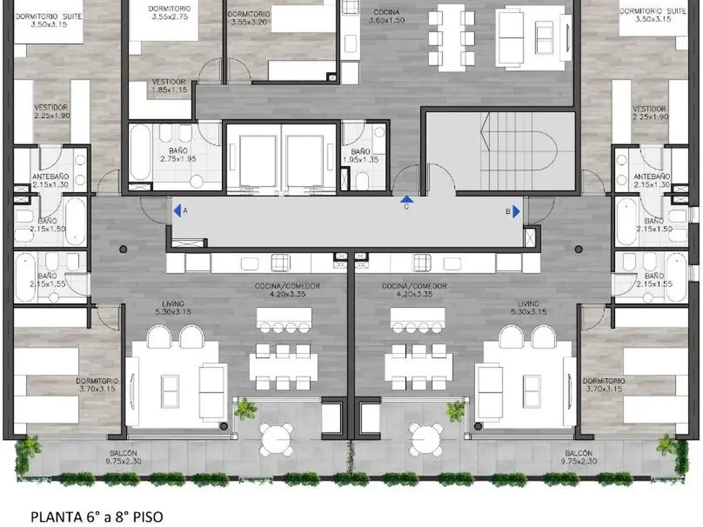 Unidades de vivienda del 2° al 10° piso con tipologías de 1, 2 y 3 dormitorios.