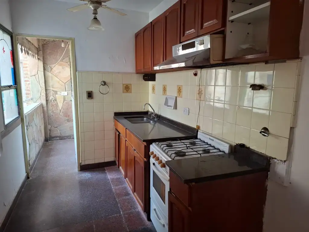 Descripción: Departamento 6 piso contra-frente, en un edificio de 7 pisos (3 departamentos por piso) y ascensor. Cuenta con un living comedor, cocina separada con mesada de granito, bajo-mesada y alacenas, lavadero independiente, pasillo distribuidor, dos dormitorios con placares empotrados y un baño con ventilación natural.
