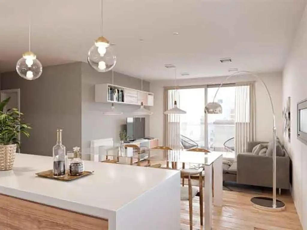 Las unidades con detalles de categorías, tienen superficies que van desde los 82 a los 125 m2, aberturas con doble vidrio hermético, calefacción por radiadores y barandas en doble vidrio laminado. Consisten en cocina con muebles en bajo mesada, alacena completa y calefón, amplio estar comedor, baño completo con bañera y vanitory, dormitorios con frente de placar e interiores en MDF laminados y amplio balcón.