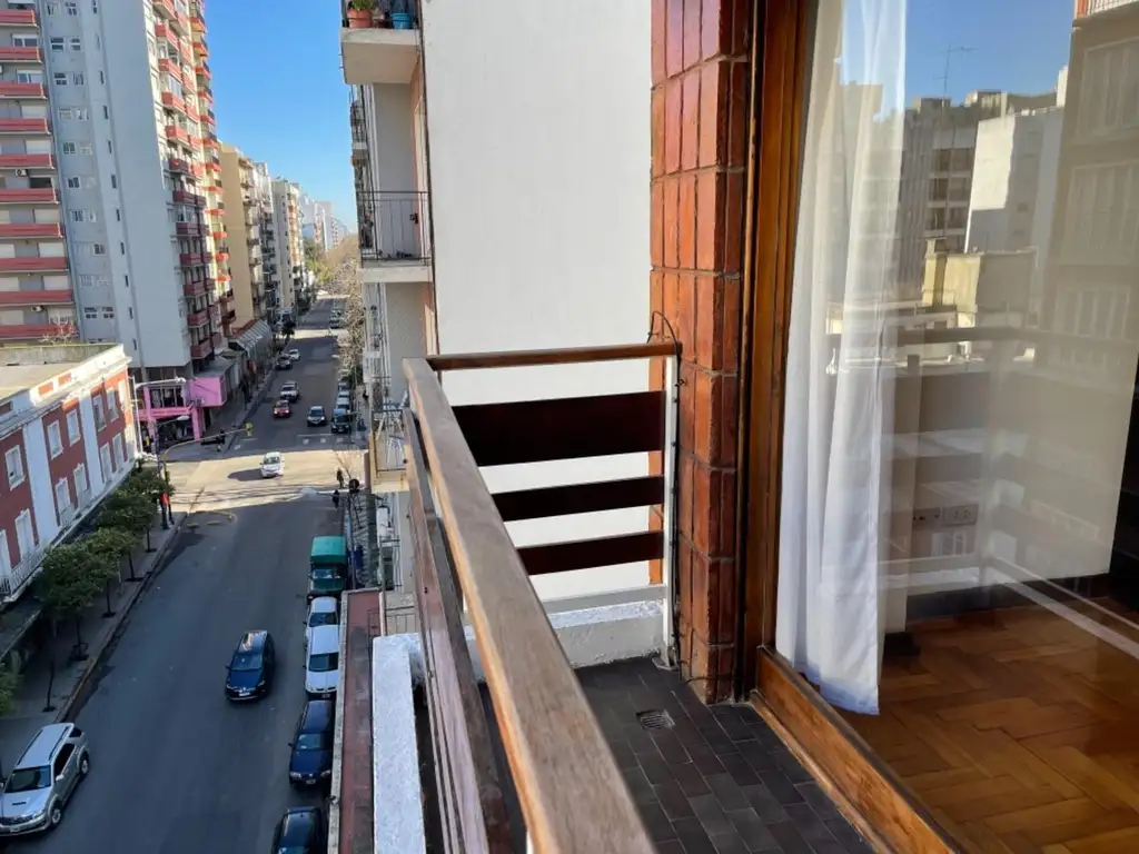 Departamento de 2 ambientes y medio a la calle con balcón saliente .