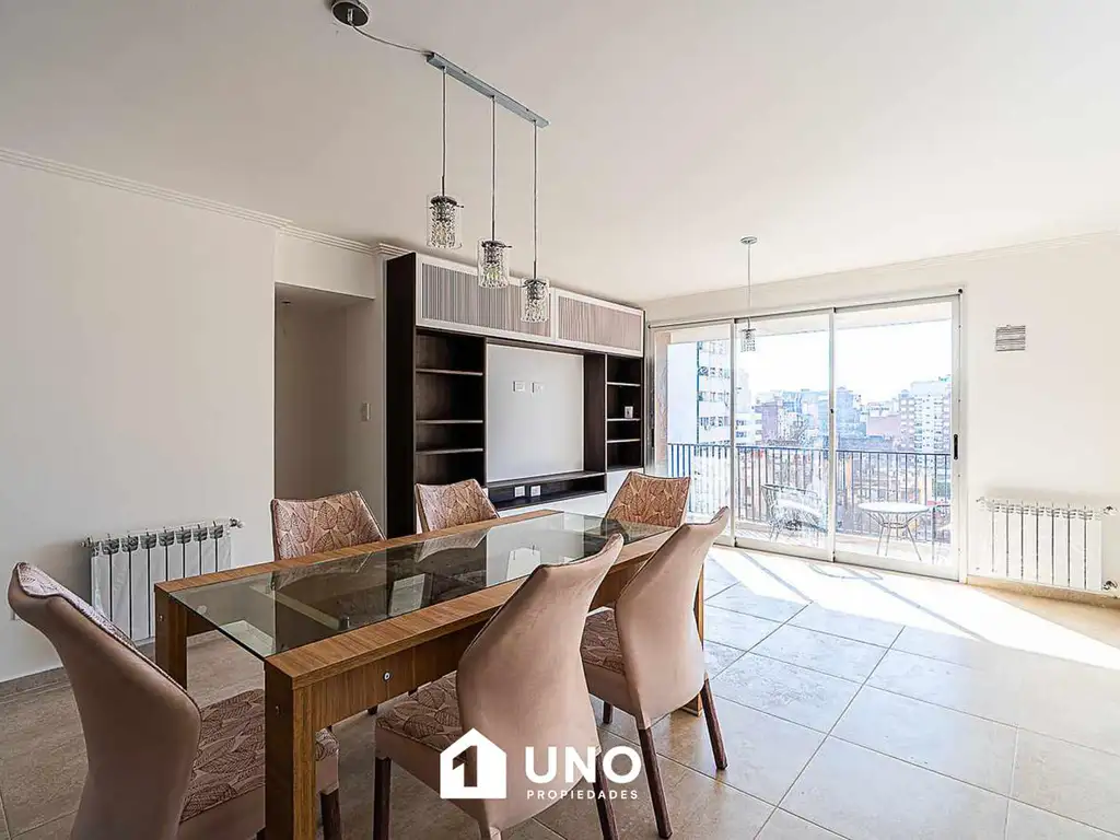 Compuesto por amplio estar/comedor con baño tipo toilette, cocina completamente amoblada, barra desayunador y balcón terraza al frente.