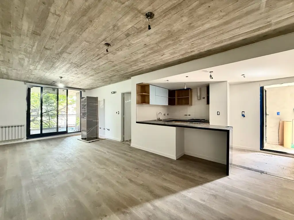 Descripción: Al ingresar al departamento nos encontramos con el Living-Comedor y Cocina Semi integrada separada por barra desayunadora con Salida a un Balcón con Parrillero.