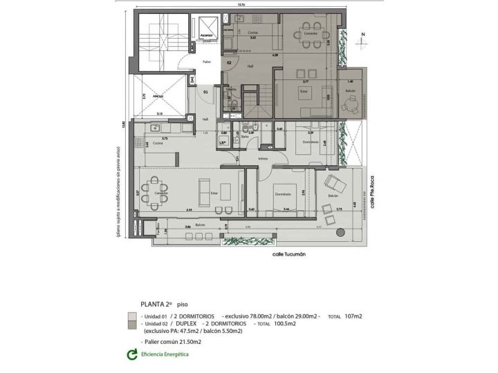 Departamentos de 2 Dormitorios Dúplex en 1° y 2° Piso