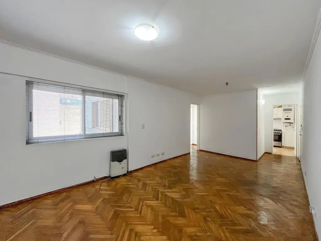 Excelente unidad residencial ubicada al contrafrente. Doble ingreso, compuesto por living comedor super amplio, cocina separada, balcón cerrado tipo lavadero, 2 dormitorios con placar y baño completo reciclado. Calidad de época con pisos de madera tipo parque en combinación con granito en espacios húmedos, aberturas metálicas en buen estado, cortinas de enrollar incorporadas, calefacción por estufa a gas, agua caliente por calefón e interiores de placares colocados. Cocina restaurada con mesada de granito negro, mobiliario completo de bajo mesada, alacena, bacha de acero inoxidable, cocina a gas instalada, purificador y espacio técnico para microondas en alacena. Baño con loza sanitaria y griferías en correcto funcionamiento, bañera con mampara de vidrio, vanitory, espejo y accesorios colocados. Lavadero sectorizado con bacha de cerámica y espacio de guardado.