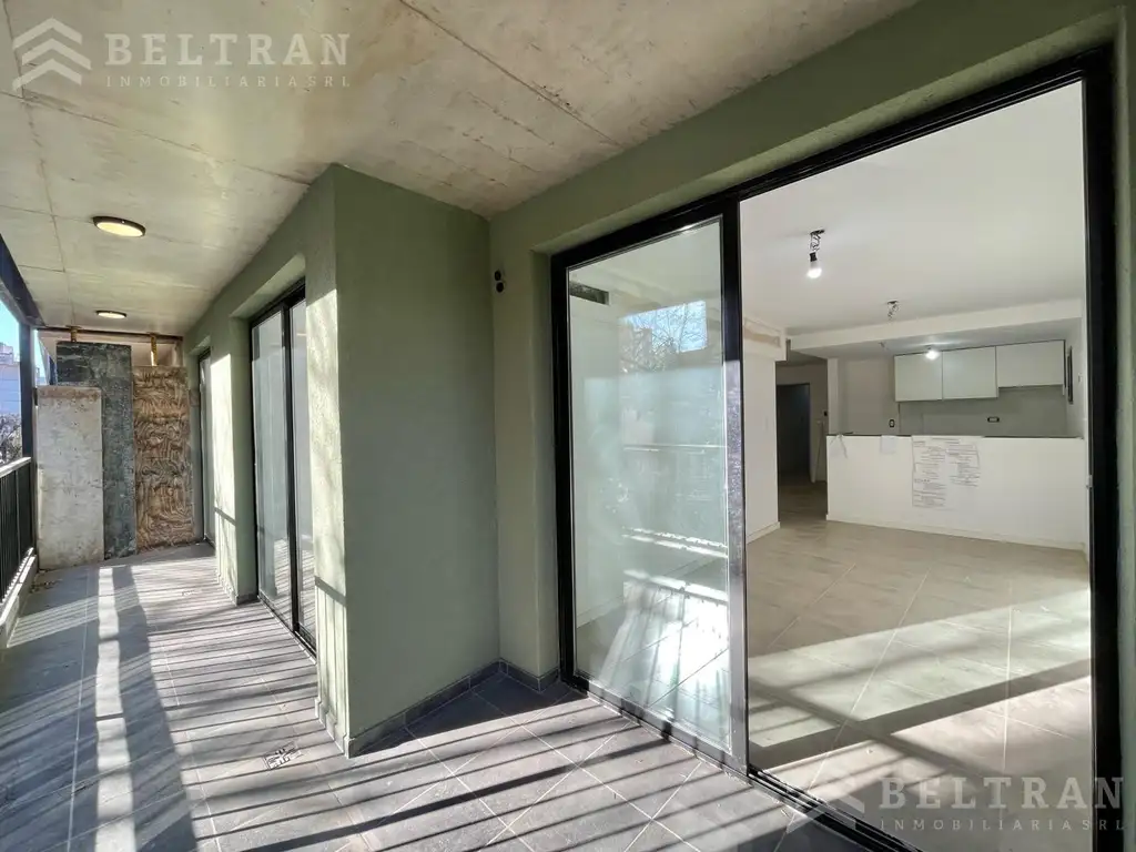 Living comedor de buenas dimensiones con cocina semi-integrada.