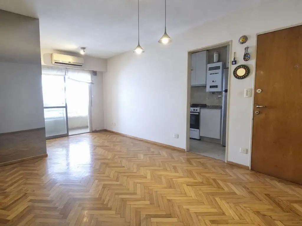 Ingreso al departamento a un amplio living comedor, con salida al balcón orientado al frente. Desde el mismo ambiente se accede a la cocina separada, completamente reciclada, con ventilación natural y conexión al lavadero independiente.