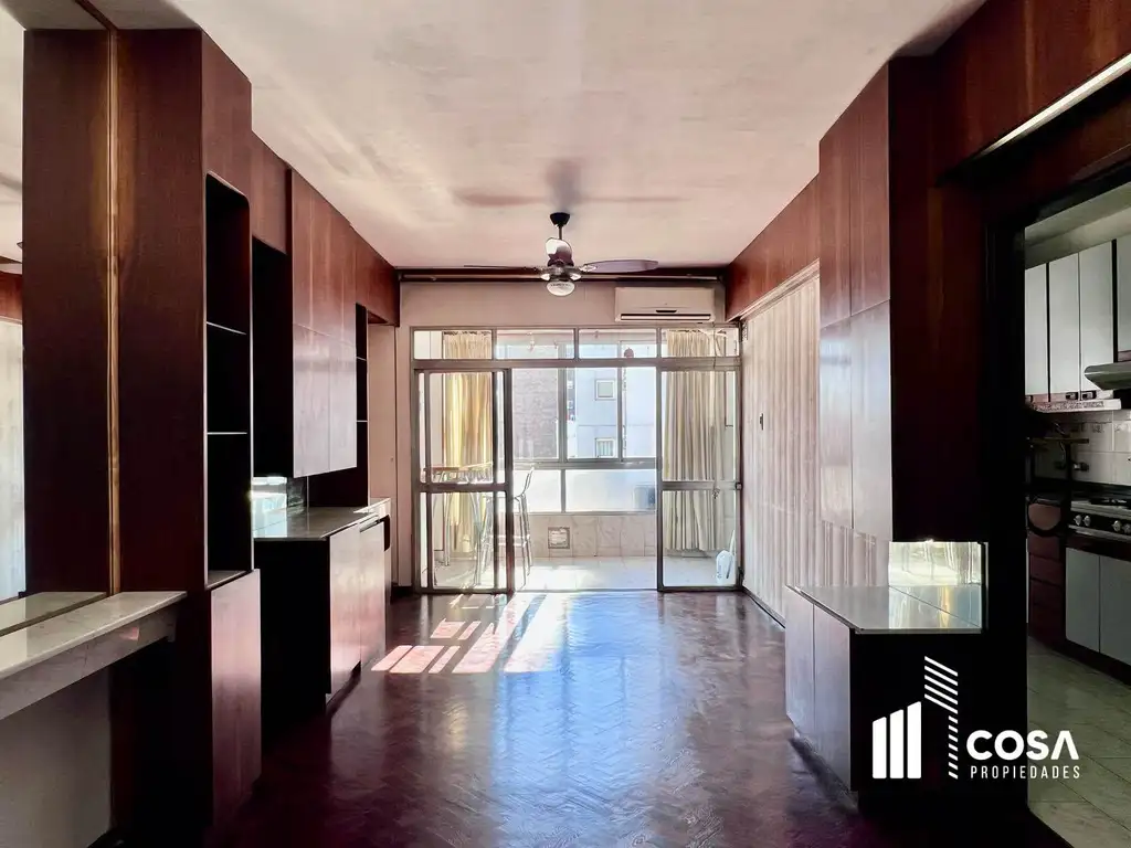 Doble ingreso. Ingreso principal a living comedor con salida a balcón cerrado tipo galería, cocina separada completamente equipada con ventilación natural (segundo ingreso), sector lavadero en balcón, baño de servicio. Paso a íntimo, baño con ducha, dos dormitorios amplios con placares incluidos, un tercer dormitorio más chico / comodín / escritorio.