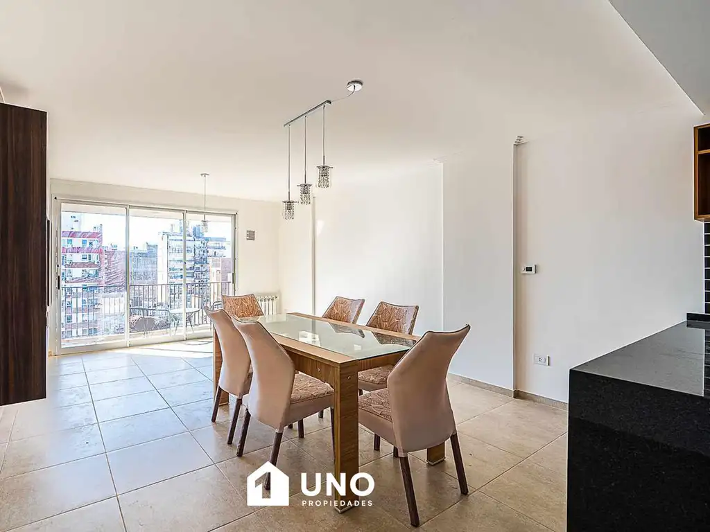 Compuesto por amplio estar/comedor con baño tipo toilette, cocina completamente amoblada, barra desayunador y balcón terraza al frente.