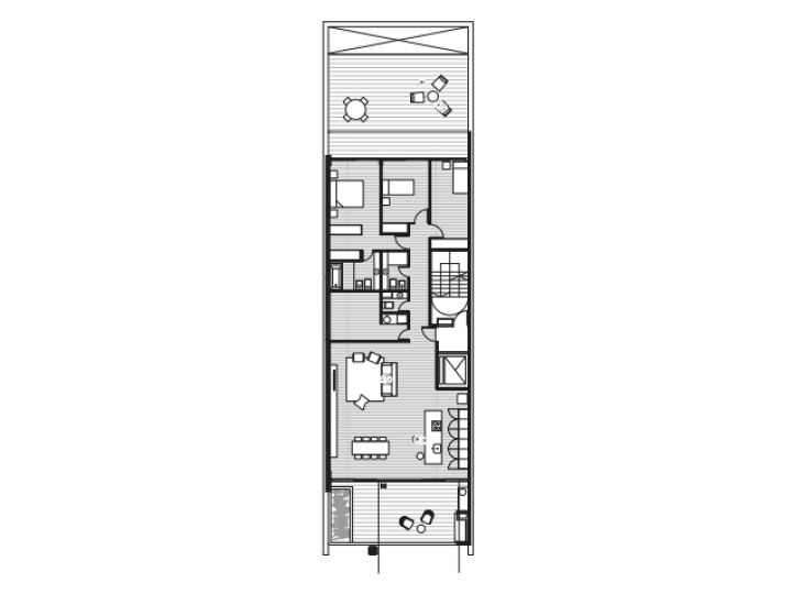 Piso 1 y piso 8: Patio y terraza exclusiva.