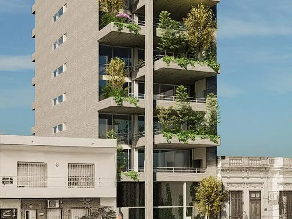 Departamentos premium de diseño moderno. Pisos exclusivos con 3 dormitorios, ingreso a gran living-comedor con cocina anexa, balcones aterrazados al frente con parrilleros propios, lavadero o espacio de comodín diferenciado, toilette de recepción y sector íntimo al contrafrente con dormitorios y 2 baños más (uno de ellos en suite con vestidor) más acceso a balcón técnico. Terminación de categoría con lineamientos arquitectónicos y detalles en hormigón visto, aberturas de aluminio con vidrios DVH con control solar, pisos de madera de ingeniería en combinación con porcelanato en espacios húmedos, aire acondicionado central con sistema tipo VRV, placares completos con interiores, cocina con gran isla de cuarzo blanco, amoblamientos laqueado en blanco de piso a techo, bacha de acero inoxidable con grifería mono comando, preinstalación para lavavajillas, anafe vitrocerámico y horno eléctrico, espacio técnico para heladera. Agua caliente central del edificio mediante calderas eléctricos y termotanque eléctrico instalado en cada departamento. Baños completos, bañera en baño suite, sanitarios de primera línea y griferías mono comando, espejos de punta a punta.