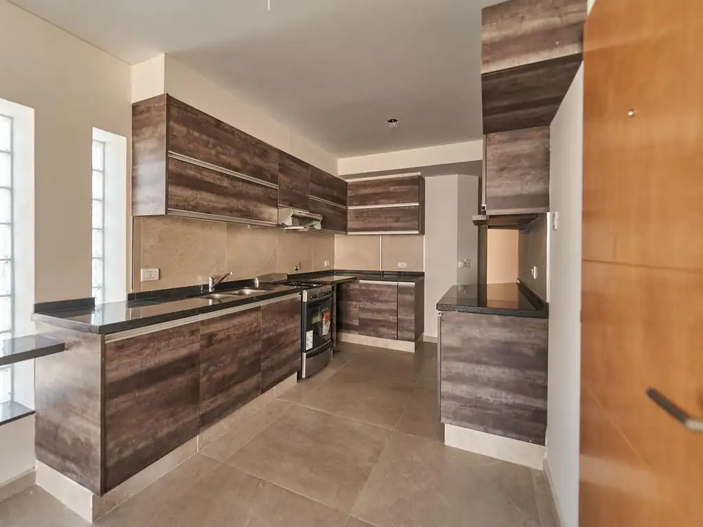 Cocina totalmente equipada con bajo-mesadas y alacenas.