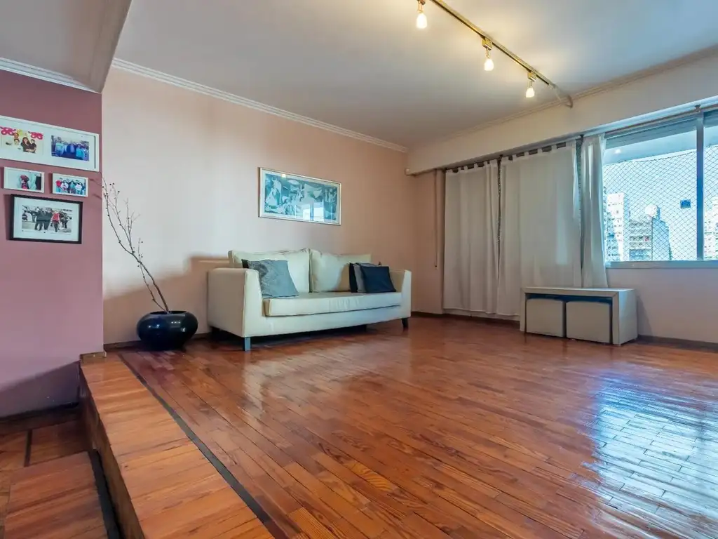 El departamento cuenta con doble ingreso por ascensor a un palier exclusivo en su entrada. Al ingresar, se encuentra un amplio living-comedor con un balcón al frente , que hace luminoso todo el ambiente. . Además la unidad cuenta con un comedor diario con cocina separada, lavadero en el balcón al contra frente con vista despejada que continua la cocina,