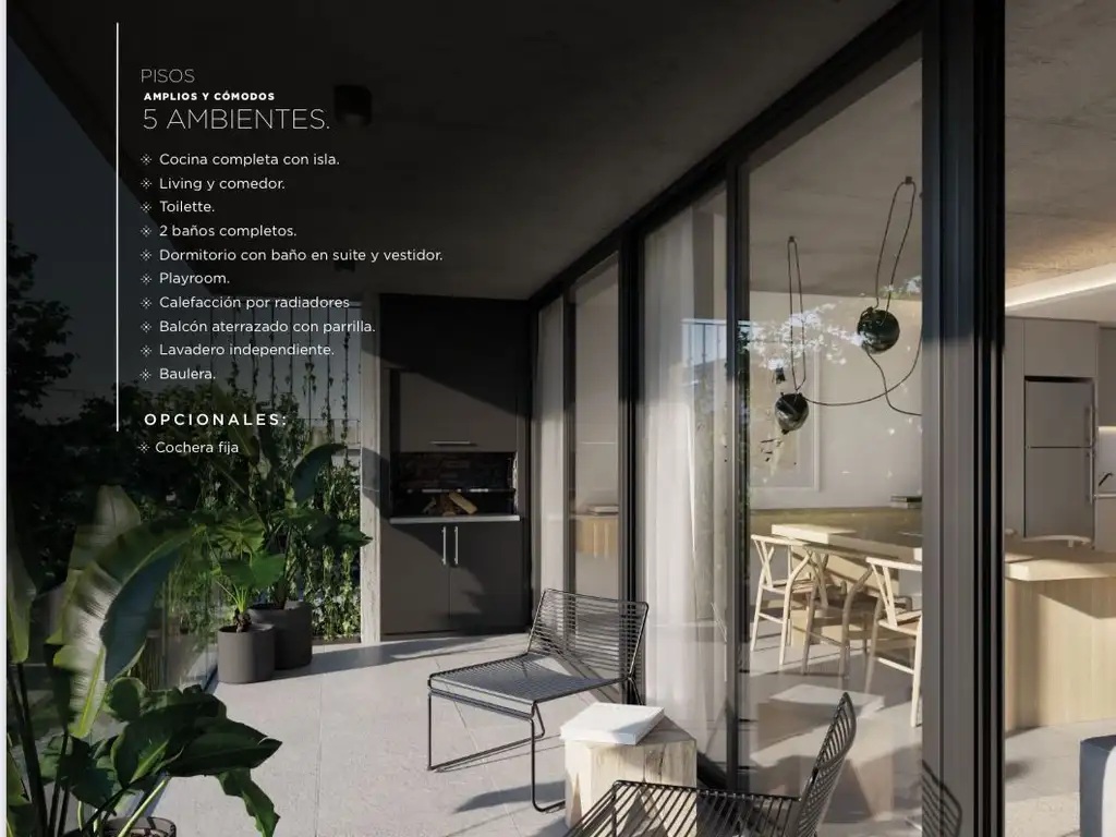 ? Living-comedor amplio, con grandes ventanales y salida directa al balcón aterrazado al frente, generando un ambiente abierto, luminoso y muy agradable.