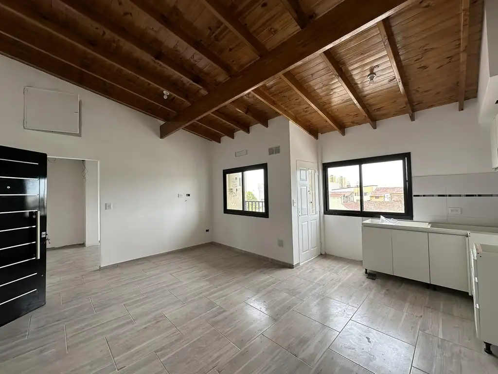 Se ingresa por cocina integrada al ambiente con muebles bajo mesada y alacena, mesada de granito con bacha de acero inoxidable y grifería monocomando, equipada con artefacto de cocina a gas natural y campana de acero inoxidable. Salida a balcón. Frente de placard e interiores completo de melamina. Aberturas de aluminio pintado color negro, Baño con artefactos sanitarios Roca y griferia Ferrum. Termotanque a gas instalado.