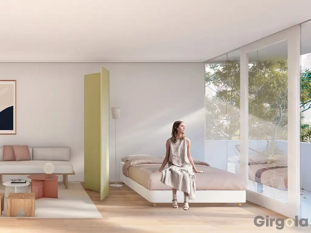 El monoambiente cuenta con una superficie total de 35.91 m², de los cuales 31.44 m² son cubiertos, lo que permite disfrutar de un espacio eficiente y acogedor. Su disposición al frente garantiza una luminosidad natural que realza cada rincón. La propiedad incluye un baño completo, una cocina equipada y un balcón privado, ideal para relajarse al aire libre.