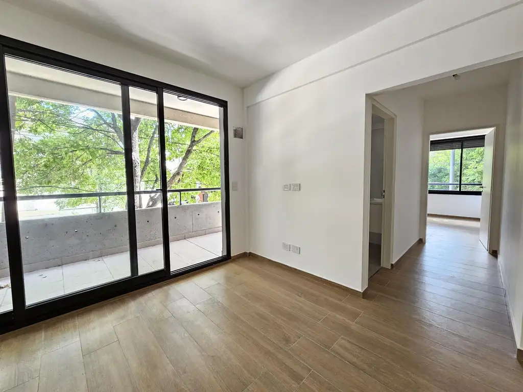 Living comedor con pisos porcelanato símil madera, aire acondicionado frío/calor, portero visor. Con salida a generoso balcón.