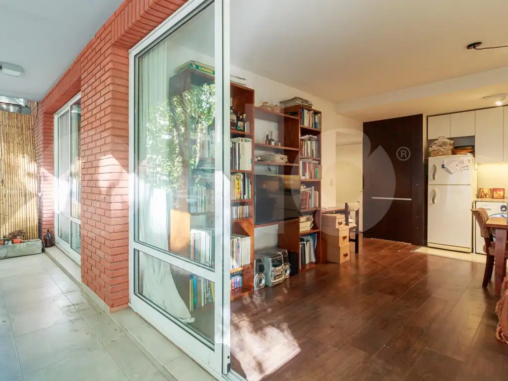 Living comedor con cocina inetgrada con salida a balcon.