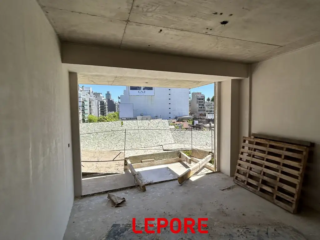 La unidad se ubica al frente sobre la Av. Dorrego. Amplio ambiente con salida al balcón, living/habitación con cocina integrada bajo mesada, alacenas con frentes laqueados y barra desayunadora. Las unidades se entregan con la pre instalación para equipos Split frío - calor. Living - comedor, cocina, baños y balcón se entregan con pisos porcellanatos.