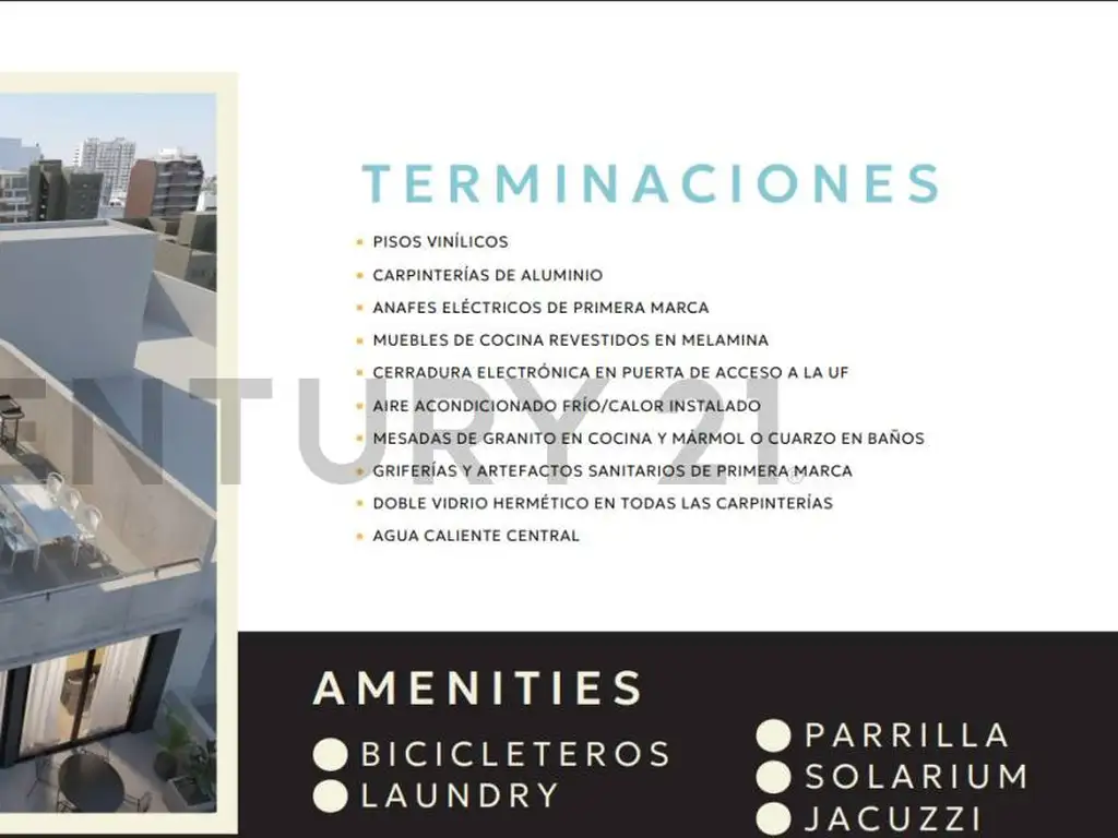 Disfrutá también de exclusivos amenities: bicicletero, laudry, terraza, solarium y parrilla para tus momentos de relax.