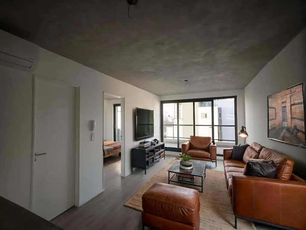 2 ambientes en Duplex, cuenta con un living comedor con salida a balcón, cocina integrada y Toilette. Dormitorio con placard y baño completo en suite. En la planta alta cuenta con una gran terraza propia con parrilla.