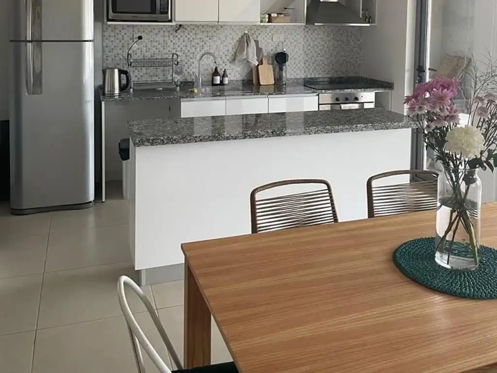El departamento tiene cocina tipo integrada con barra al living comedor, muy amplio con mucha luz natural. Espacio para escritorio.