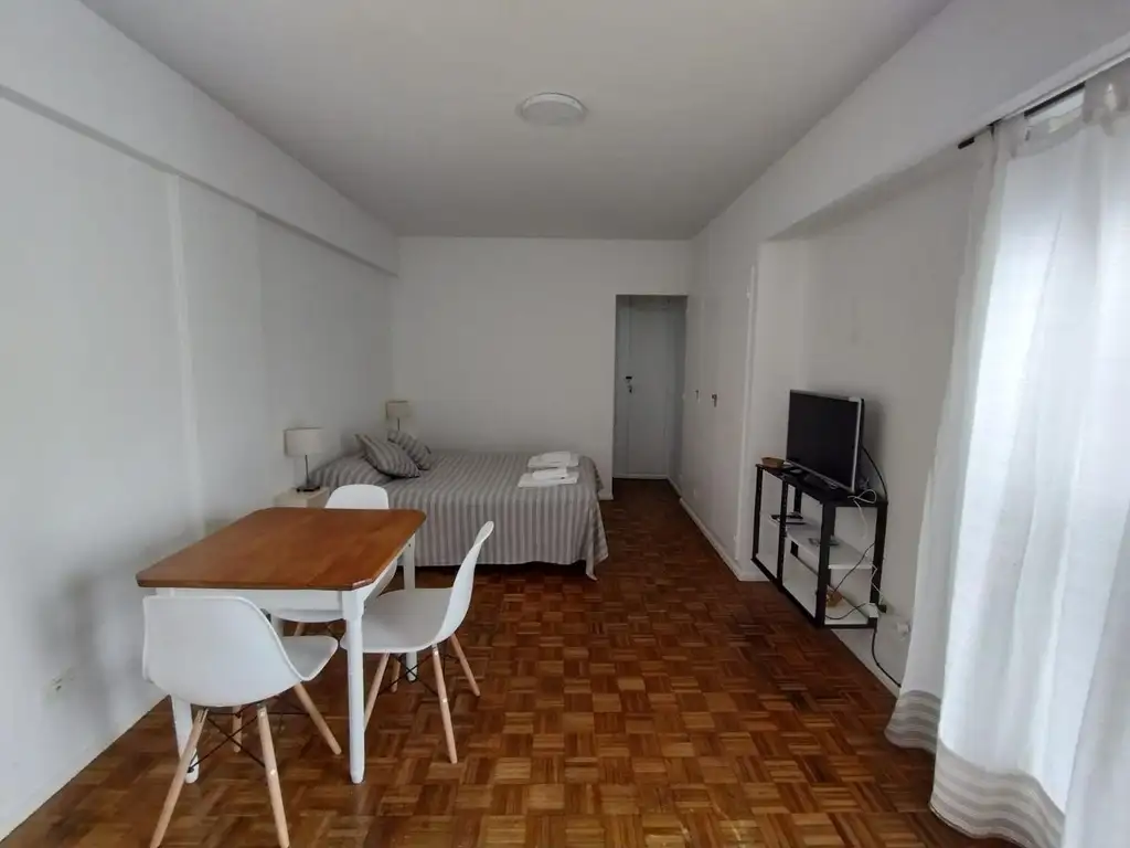 Se vende totalmente amoblado y equipado: aire frío/calor, cama matrimonial, mesa con 4 sillas, placares amplios, repisas.