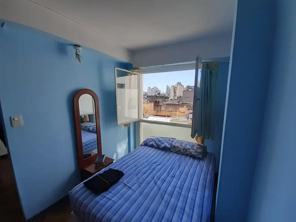 Departamento 2 ambientes chico, muy luminoso, cuenta con living con kichnet, baño completo y dormitorio.