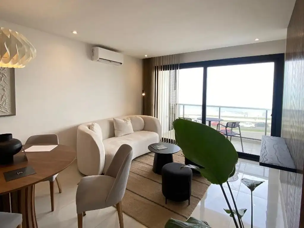 Al ingresar a la unidad, un espacio de recibidor da la bienvenida y organiza la circulación hacia los distintos ambientes. La cocina se encuentra integrada, con diseño moderno y funcional, conectando con un amplio living comedor que se destaca por su vista plena al mar.