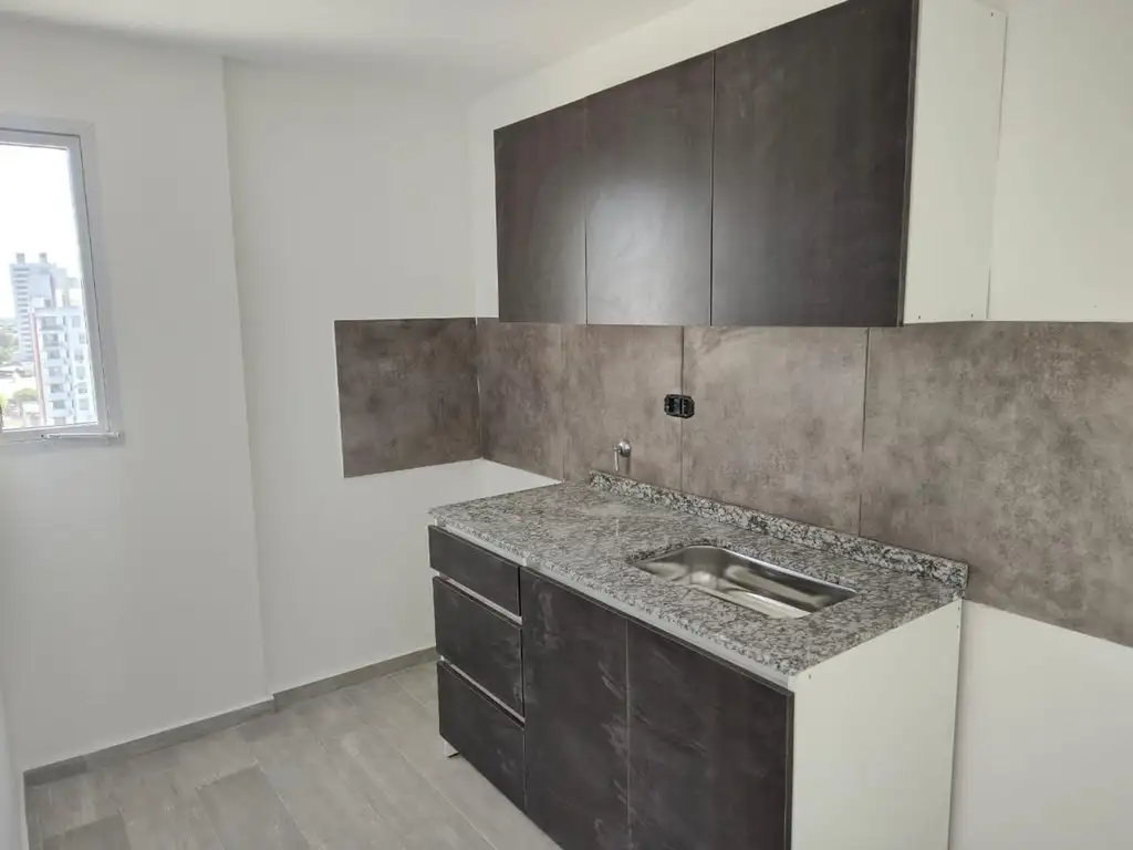 La cocina está sectorizada, en un ambiente de 2.4 x 2.3, mientras que al departamento se ingresa por un living comedor extremadamente cómodo y con salida al balcón.