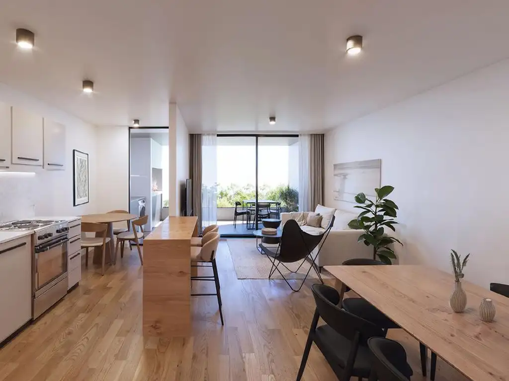 Proyecto: El proyecto ofrece 26 departamentos de 1, 2 y 3 dormitorios, con una arquitectura contemporánea, sobria y funcional. Cada unidad fue diseñada para aprovechar al máximo la luz natural, con ambientes amplios, terminaciones de calidad y vistas al verde que rodea el conjunto.