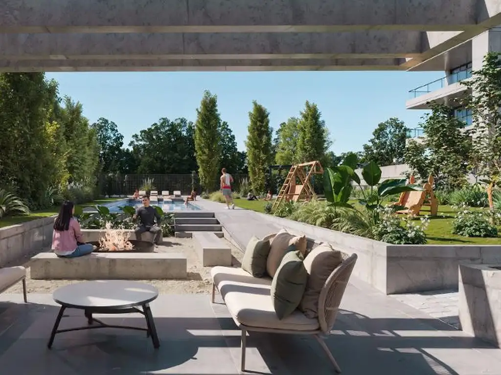 Amenities: El proyecto ofrece una completa selección de amenities: amplias cocheras y bicicleteros en un subsuelo semienterrado, sala de coworking, playroom para los más chicos y gimnasio en planta baja. En el gran jardín se destacan las pérgolas con bancos, piscina con solárium, quincho interior y exterior, sector de fogonero y kids zone, todos espacios pensados para el esparcimiento y la convivencia. Cada rincón está diseñado en conexión con la vegetación y la naturaleza, pensados para disfrutar y relajarse todos los días.