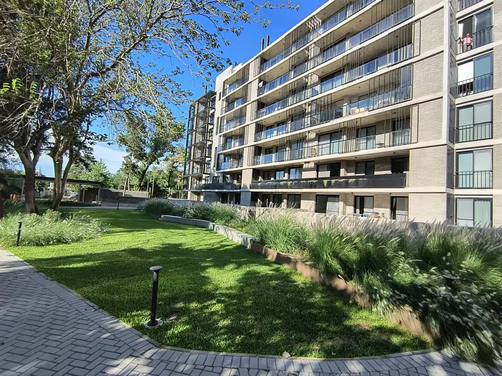 Unidad de 2 dormitorios en planta baja, ubicada en Torre 1. Cuenta con 78 m2 cubiertos y un patio exclusivo de 54 m2 con parrillero propio, totalizando 132 m2.