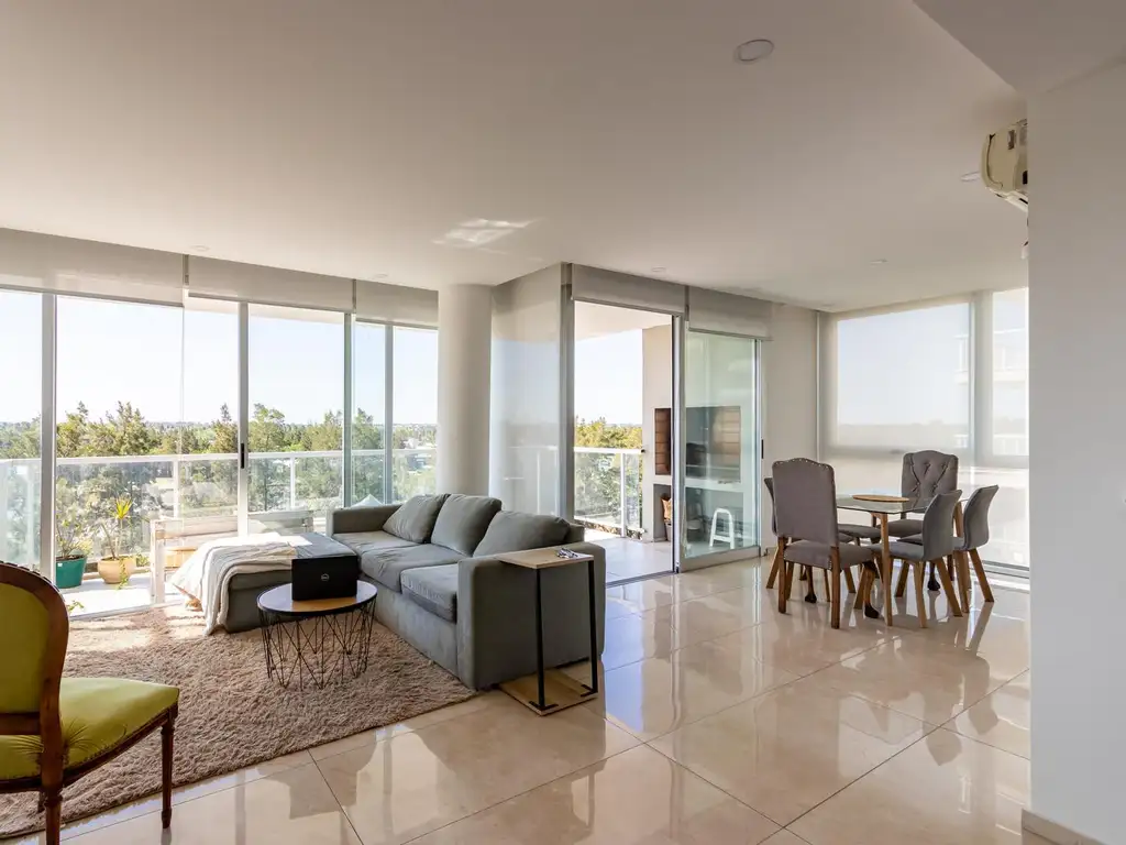 Living comedor con salida al balcón corrido al frente (orientación norte) el cual pose parrillero de uso propio y excelente vista al Country del Lago. Cocina semi integrada totalmente equipada y lavadero independiente con balcón. Distribuidor al sector intimo de 3 dormitorios. Dormitorio principal en suite con vestidor. 2 dormitorios con placares. Todos con salida a tercer balcón (orientación sur). Segundo baño completo. Cochera Doble.