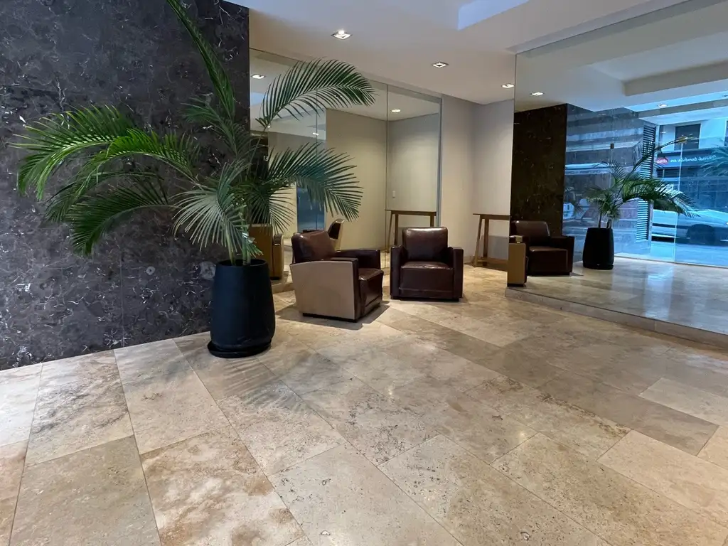 Excelente departamento monoambiente con balcón, a estrenar. Las unidades cuentan con un amplio y luminoso ambiente c/ cocina integrada, interior de placard, A/A, salida a balcón al contra frente; cocina completa integrada, hornallas a gas y horno eléctrico, espacio/ heladera, SPAR, muebles sobre y bajo mesada; balcón con conexión/ lavarropa; baño completo c/ bañera. Pisos de porcelanato. Unidades de excelente calidad con detalles como: Puertas blindadas Pentágono, puertas corredizas con doble vidrio hermético, mesadas en granito negro Brasil, artefactos de cocina Longvie, sanitarios Ferrum, grifería FV y más. Edificio con caldera central y grupo electrógeno. COCHERA OPCIONAL DESDE U$D 25.000. BAULERA OPCIONAL POR U$D 6.000.