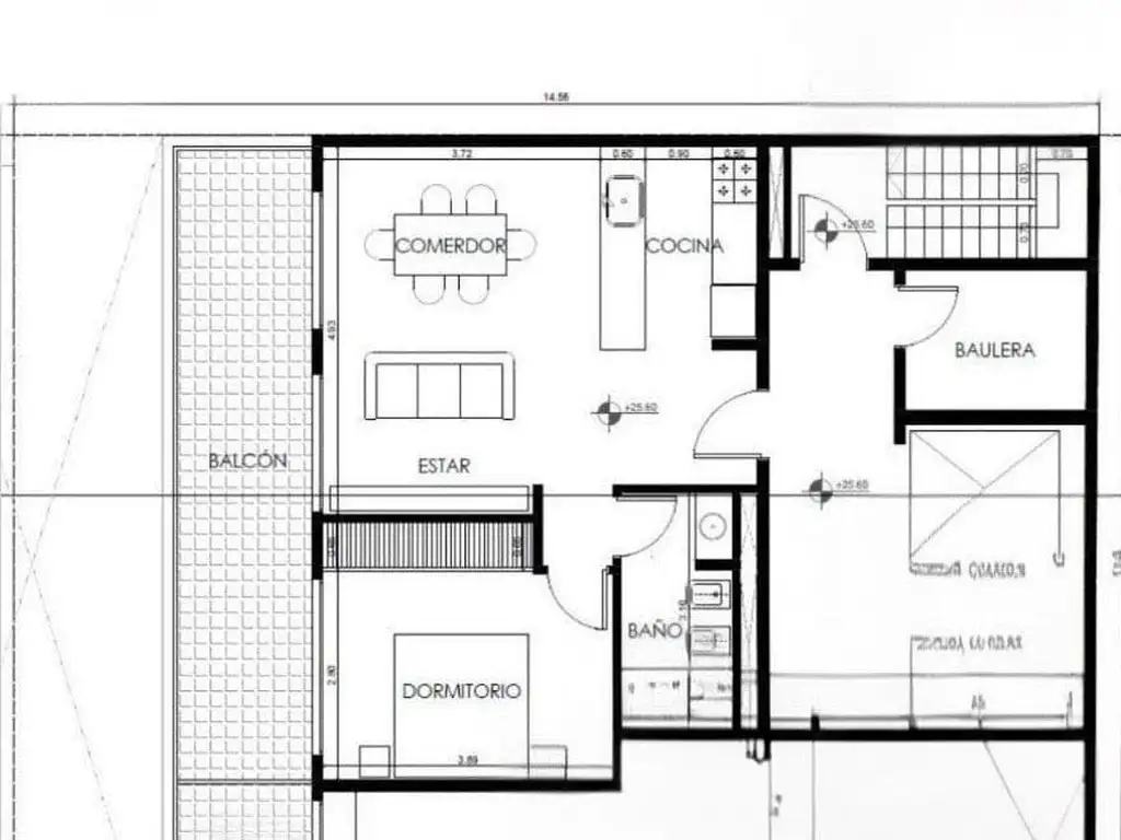 Living comedor con cocina integrada 4,93 x 3,70 m
