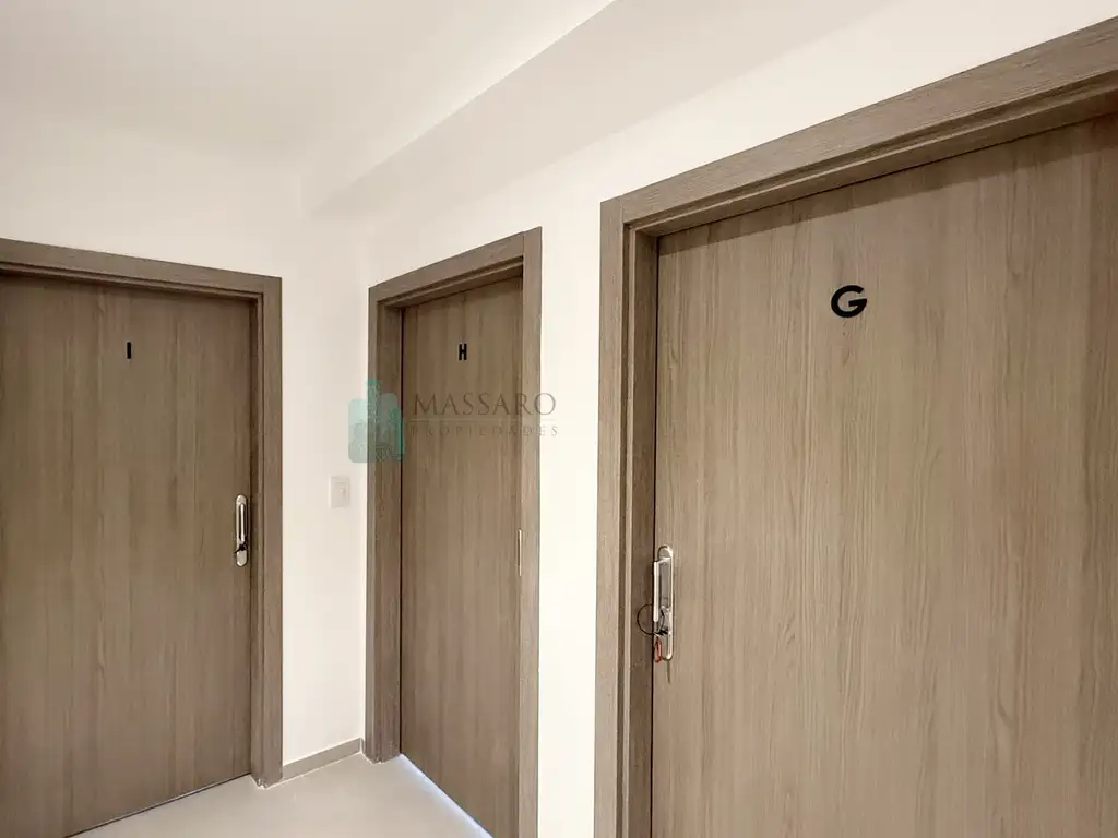 El departamento se encuentra en sexto piso al frente, consta de hall de entrada, baño completo de 1.70x1.97, ambiente con cocina integrada de 8.86x3 con balcón. En la cocina tiene espacio destinado a heladera y conexión para lavarropas, en el ambiente posee preinstalación de aire acondicionado y videoportero con monitor digital.