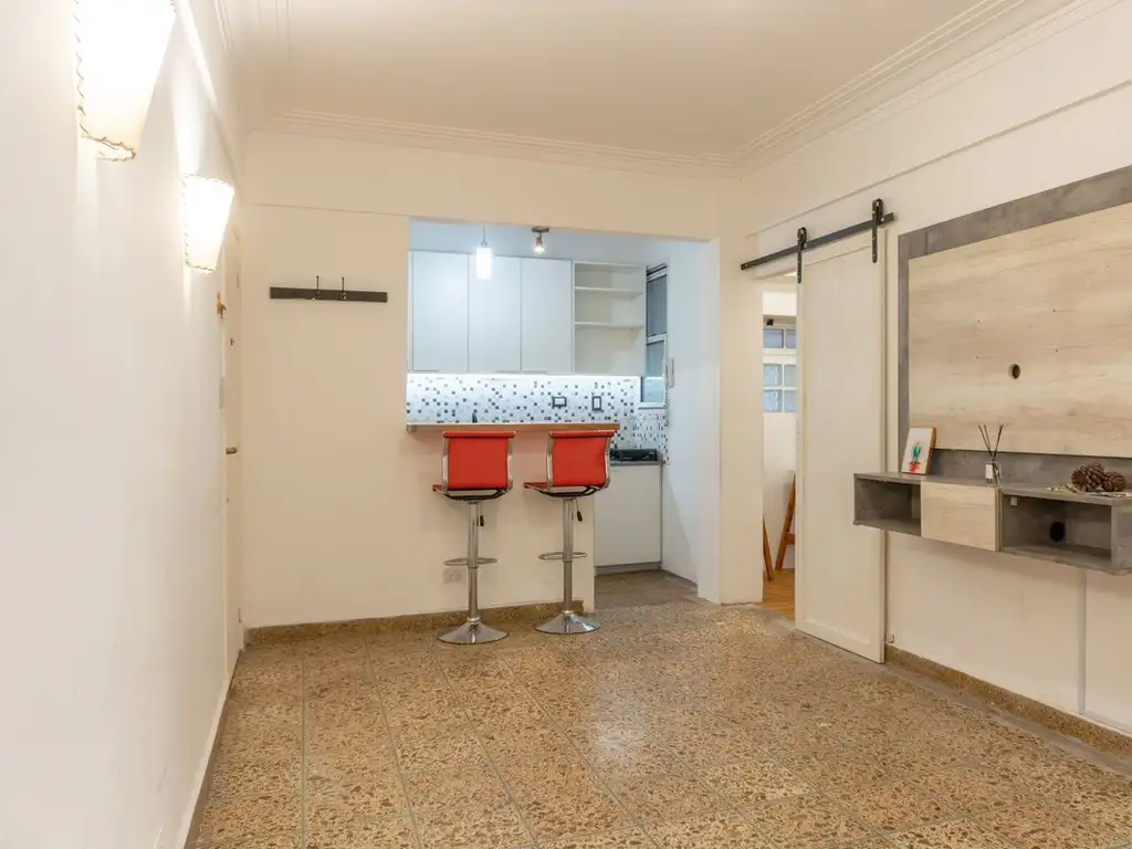 El living-comedor presenta óptima luminosidad natural, con amplitud que permite diferentes configuraciones de espacios. La cocina, moderna y funcional, cuenta con instalaciones eléctricas renovadas recientemente. El edificio no posee instalación de gas, todo el cableado eléctrico esta nuevo desde la calle